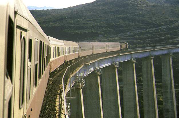 Eine LDE1500 auf der Strecke Aleppo-Latakia, und deutlich zuerkennen, 3 Waggongs der 2 Klasse direkt hinter der Lok, und danach 4 Waggons der 1 Klasse.